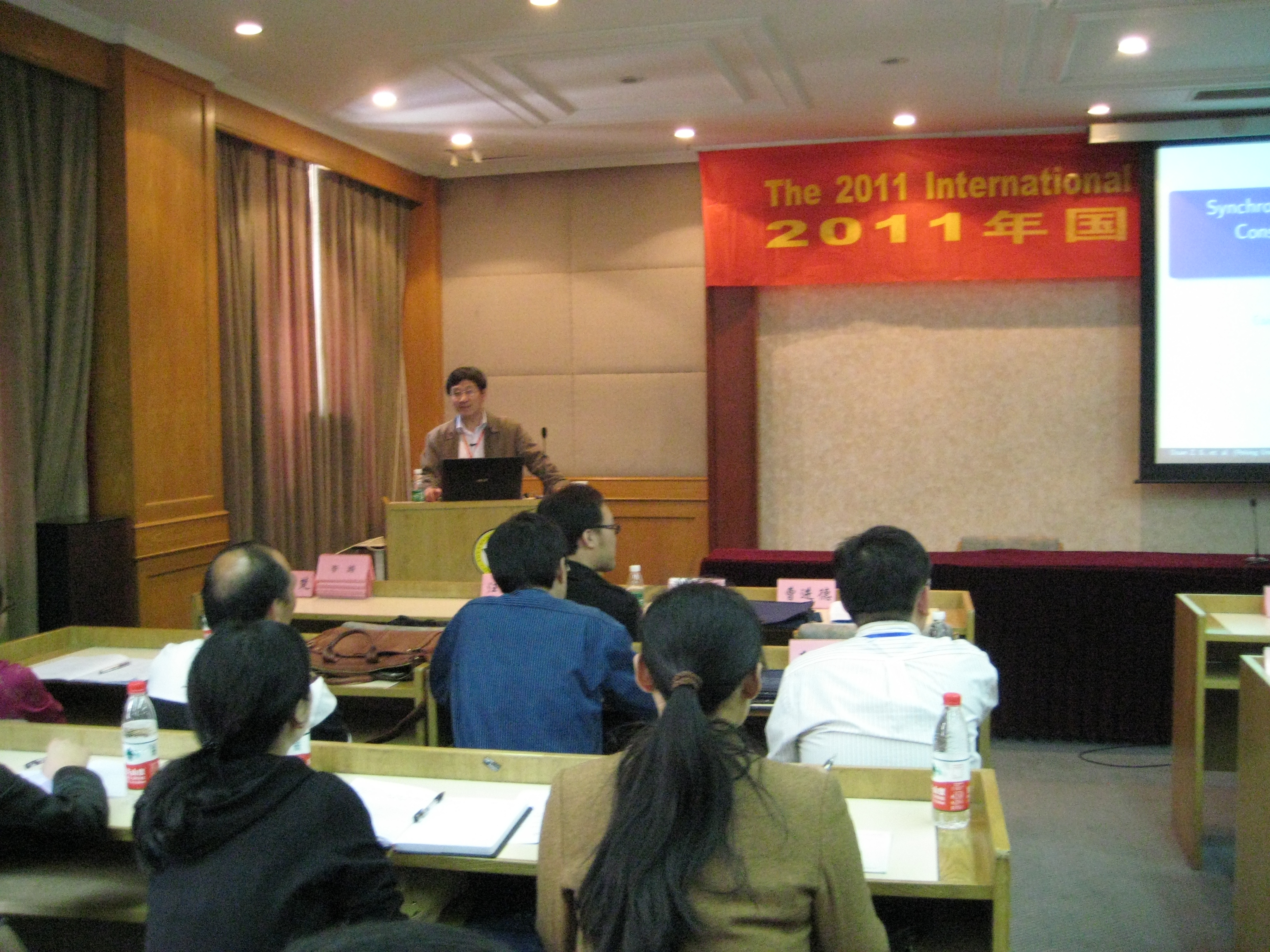 | 4月23日上午8:30,由我系主办的2011年国际复杂网络与系统会议(The 2011 International Symposium on Complex Networks and Systems)(ISCNS 2011)开幕式在beat365在线官网春晖小礼堂举行。本次会议为期两天,邀请到中国工程院院士、国网电力科学研究院名誉院长薛禹胜教授、香港城市大学陈关荣教授等12名国际著名专家做大会报告,90余名来相关领域的学者出席,围绕复杂网络与复杂系统、多智能体系统、非线性系统与控制、系统生物学、传感器网络、通信网络、网络控制系统及其应用展开了热烈的讨论。 |