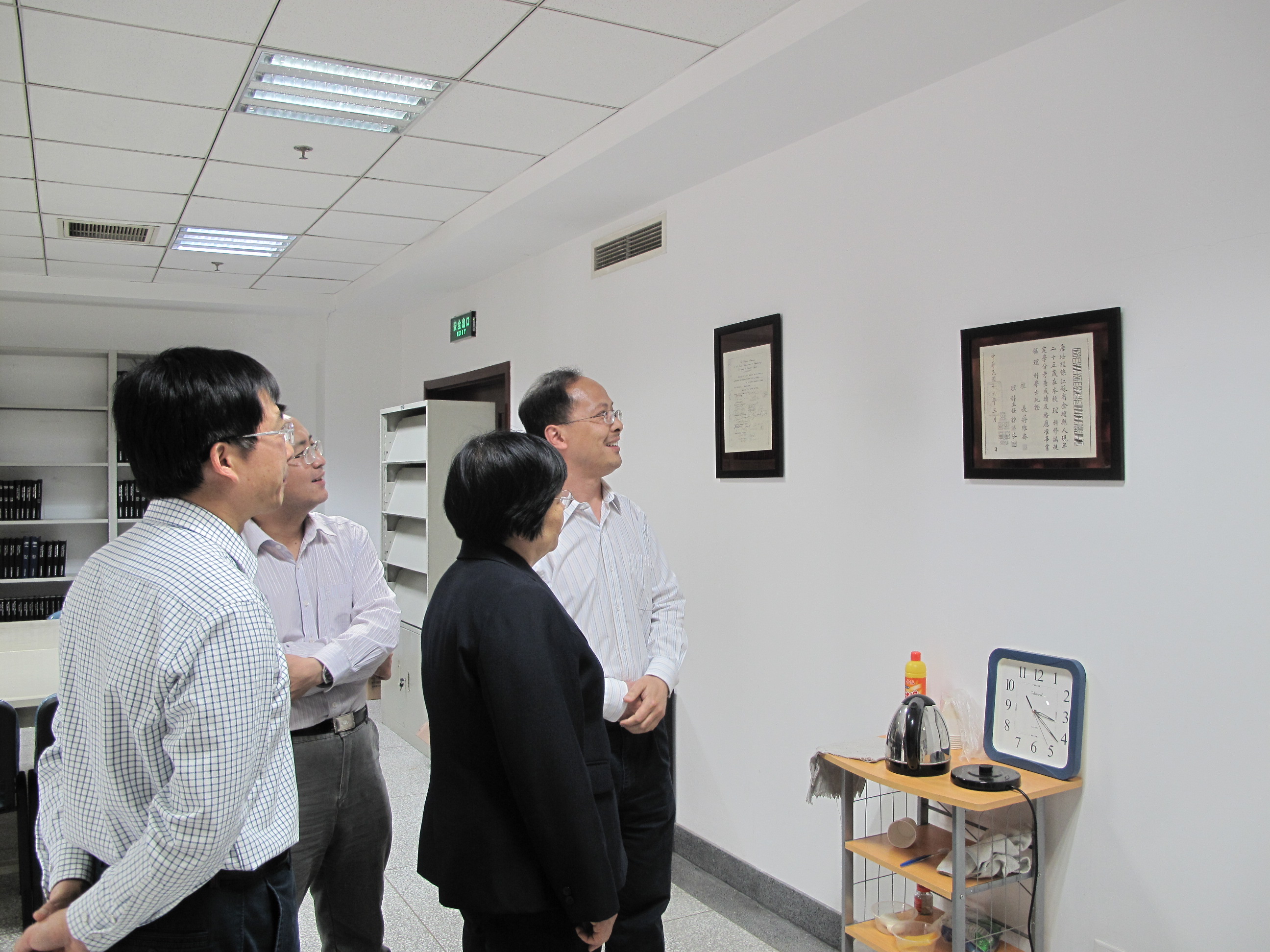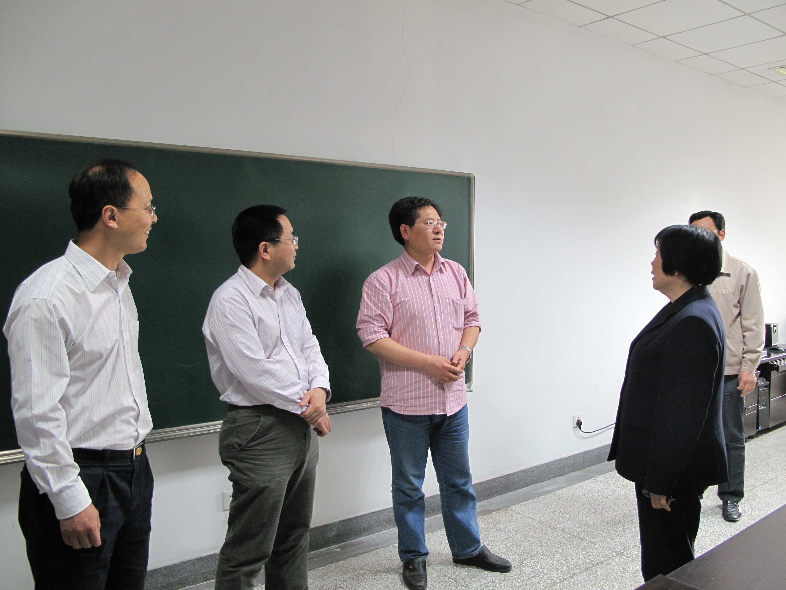 2011年5月4日下午,校党委书记郭广银在校党委办公主任管平的陪同下来到数学系进行调研。郭书记看望了正在工作中的数学系教师们,并参观了培经图书室、数学系资料室、教授工作室等。郭书记边参观边听取了刘继军主任、李涛书记对于数学系相关工作情况的汇报。