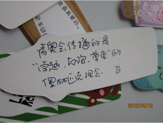| 2012年4月13日中午,由数学系团委主办、数学系070111团支部承办的,为迎接2014年第二届青奥会,以“活力东南,共迎青奥”为主题的系列活动在我校梅园食堂顺利开幕。此次活动不仅得到了学校领导、各位老师们大力支持和鼓励,也吸引了众多同学的积极参与。 本次“活力青奥”作为“活力东南,共迎青奥”系列团日活动的第一个系列,由走进青奥、活力青奥和祝愿青奥三部分组成。虽然活动当天天公并不作美,但我支部工作人员热情不减,全都以饱满的热情和积极的态度投入到本次团日活动中。 其间,趣味飞镖的娱乐环节吸引了众多师生的眼球。大家纷纷参与其中,一展身手,赢取精美小奖品。此环节中涌现出的高手、牛人们,引起围观群众的尖叫和掌声,将本次活动推向了高潮。我支部希望通过本环节传达出“运动快乐”的理念,让大家在简单的小运动中感受运动之美、运动之乐。 此外,本次活动还包括分发青奥知识卡和书写对青奥的祝愿两个环节。我支部成员将与青奥有关的常识写在卡片上,并分发给同学们,希望借此普及青奥知识,让同学们进一步地感受青奥。书写祝愿便笺环节将本次活动再次推向了一个高潮。看着围在桌旁的拥挤人群,读着同学们亲笔写下的祝福,我们深深感受到了东大学子对青奥的关注与期待。 本次团日活动是我070111支部为迎接2014年将在南京举行的第二届青少年奥林匹克运动会,结合我校学生的实际情况,以提倡在运动中感受快乐为理念而举办的活动。我支部希望通过本次活动,在普及青奥知识,增加同学们对青奥会的了解的同时提高同学们运动健身的热情。 |