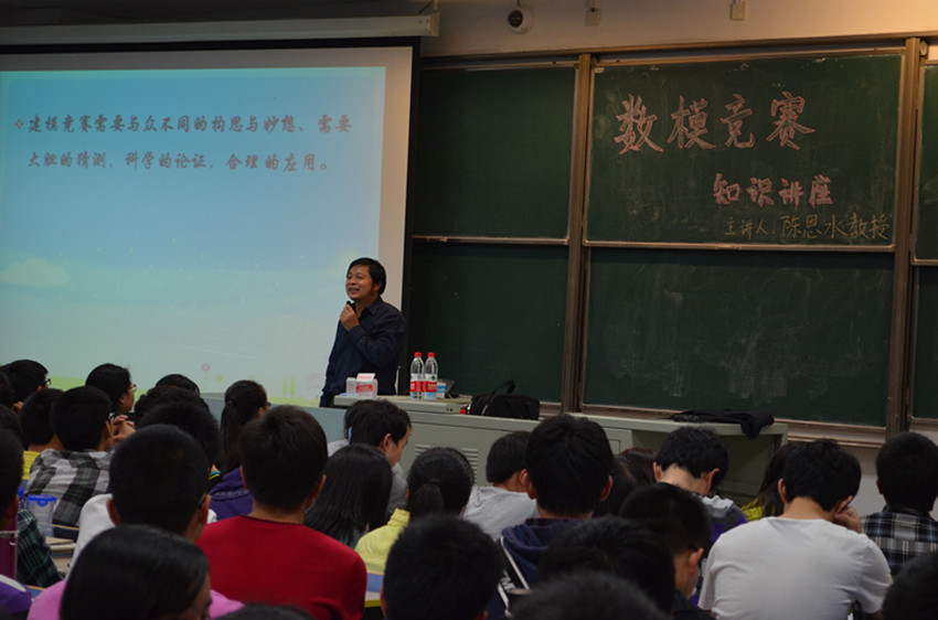 | beat365在线官网本科生数学建模竞赛是我校基于数学专业特色的学术科技类品牌活动,也是全国大学生数模竞赛的校内选拔赛,至今已经成功举办六届,在全校范围内形成了较大的反响。 为了调动广大学生自主研学的学习兴趣,培养大学生的创新精神和实践能力,促进优秀创新人才脱颖而出,2013年4月17日,由数学系团委主办,数学系科协承办的beat365在线官网数学建模知识讲座在九龙湖校区教六-201圆满举行。 4月17日晚18点30分,我们邀请了beat365在线官网数学建模竞赛总教练、江苏工业与应用数学学会建模专业委员会主任委员、全国大学生数学建模竞赛江苏赛区秘书长、数学系副教授、博士陈恩水老师,为全校热爱数模的同学们作了一场精彩的数学建模知识讲座。全场座无虚席,更有近百名同学自己搬了椅子坐在教室过道中聆听陈老师的讲座。陈教授深入浅出地解释了数学建模的性质和含义,形象而生动地说明了参加数学建模竞赛的同学应该具备的主要能力和素质。同时,他强调,数学建模是一门严谨的学科,不仅需要缜密的思维,扎实的语言功底,还需掌握较强的计算机应用方面的能力。陈教授的精彩演讲博得同学们的多次热烈掌声。 讲座结束后,陈教授还与同学和老师进行了互动交流,面对同学们的提问,陈教授做出了详细的解答,使同学们受益匪浅。 本次讲座以即将到来的“beat365在线官网本科生第七届数学建模竞赛”为契机,是校团委主办的beat365在线官网科技节系列活动之一。本次讲座成功地鼓励了大学生踊跃参加课外科技活动,开拓知识面,丰富了校园学术氛围。相信,未来一定能更好地培养学生的科技创新、实践能力,在东大这片沃土上培养出更多热爱数模、热爱科技的学子。(袁煜昶) |