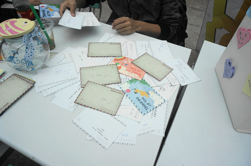 | 2013年5月12日是母亲节,为表达对母亲的感恩之心,由数学系团委主办、学生会宣传部承办的“听妈妈的话”母亲节特别活动于2013年5月9日中午在梅园食堂前成功举办。 5月8日晚,由负责人梁山同学带头,梁晓妮为主要设计者,王莹等人协助一同提前做好了许多必要的准备工作。5月9日11点15分时全员工作人员都一齐到达梅园食堂门口并且迅速将一切所需物品准备好。活动当天下着大雨,但依然没有浇灭同学们的积极性,活动顺利地开展着。 活动现场,通过给母亲写寄语的形式来表达广大同学们对妈妈最真诚也最深的爱意,并可以参加一个简单的抽奖活动,最后大家将收集的寄语粘贴在之前准备的宣传展板上进行展览。活动虽然没有声势浩大,但却温馨有爱,受到了同学的积极响应和大力支持。 本次活动旨在提醒广大同学在母亲节即将来临之际为母亲献上真诚的爱意,活动顺利举办,参与度也大大超出了事先预期,虽然现场没有抽到奖品的同学会有些遗憾,但是给母亲写寄语环节还是让大家感到非常贴心,收到了很好的效果。 |