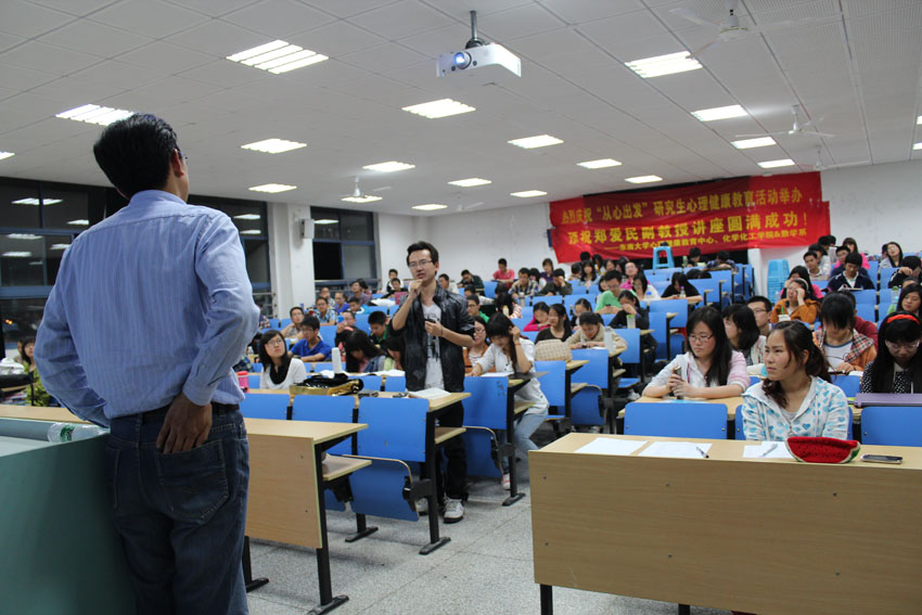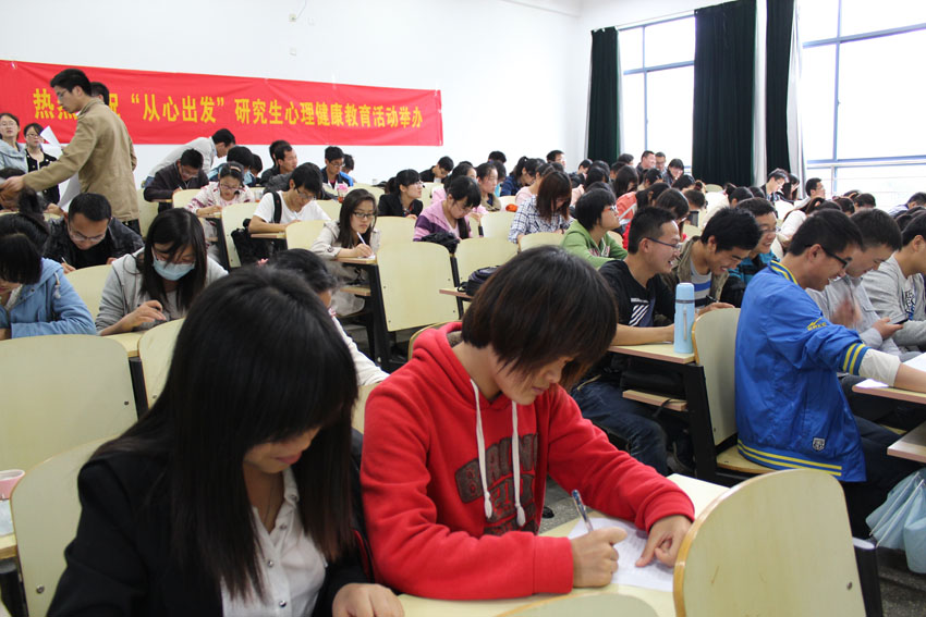| 2013年5月8日――5月24日,beat365在线官网 “从心出发”研究生心理健康教育系列活动得到圆满成功。本次活动由beat365在线官网党委研究生工作部、beat365在线官网化学化工学院、beat365在线官网数学系和beat365在线官网大学生心理健康教育中心主办,beat365在线官网化学化工学院研究生会、beat365在线官网数学系研究生会和beat365在线官网心理健康协会承办,旨在引导学生关注心理健康,培养积极心理,促进心智成熟。 本次心理健康活动以“关注心理健康 缓解心理压力”为主题,活动主要分为三个部分。 5月8日,我们在纪忠楼成功举办了心理测试活动。我们有幸邀请到了数学系党委副书记兼副系主任曹海燕老师、数学系团委书记袁煜昶老师、化学化工学院党委副书记兼副院长陆娟老师和化学化工学院团委书记梅震宇老师为嘉宾。本次活动主要分为心理知识简介和专业心理测试两个环节。首先主持人对抑郁自评量表(SDS)做了指导说明,同时介绍了抑郁焦虑存在的危害及问题,希望同学们高度重视自己的抑郁程度,及时调整自己。然后参加活动的学生认真填写了专业心理测试的问卷,并在主持人的指导下计算出自己的分数,根据分数等级了解自己的抑郁程度,及时的发现问题,解决问题。活动举办后反响热烈,为我们后期活动打下了坚实基础。 5月10日,我们有幸邀请到了中国药科大学郑爱民副教授在教学楼J2-209给大家上了一堂心理课,主题为“在压力下自由呼吸”。郑教授简单介绍了“WHO”身心健康的“三良标准”:良好的个性、良好的人际关系和良好的社会适应,然后重点讲了自我心理调节的三原则,现场同学和老师展开了激烈的讨论,郑教授也耐心的解答了同学们的疑惑与问题。两个小时的讲座,郑教授幽默风趣、知识渊博,赢得了同学们的阵阵掌声和喝彩,全场氛围热烈欢畅。 5月24日,我们在橘园大厅成功举办 525心理健康活动,主要通过两个游戏的方式来缓解学生的压力。第一个游戏是“战胜困难 释放心理压力”,具体的活动形式是:参加活动的同学将烦恼写在气球上,并使劲打气球,直到把气球打爆。该游戏的寓意是战胜困难,打倒烦恼。第二个游戏是“艺术表达 分享你我真情”,具体的活动形式是:参加活动的同学在便利贴上写下你的心情或困扰的问题或者是对他人的祝福,让其他的同学跟你一起分享或是帮你解决问题。该游戏的寓意是分享真情,共同承担。虽然今天酷暑难耐,但同学们积极参加,现场活动相当热烈! |