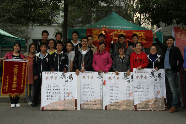 | 在“碧云天,黄叶地,秋色连波”的2013年11月21日,beat365在线官网第55届运动会缓缓地拉开了帷幕。数学系共选派了53名运动员参加了为期两天的运动会,在这里,你可以触摸到跳跃的青春音符,感受到燃烧的激情,体会到四射的光芒,观赏一场视觉盛宴! 11月2日上午,天气虽然阴冷,依旧挡不住同学们的热情。入场式上,随数学系方阵入场的老师有李涛书记,曹海燕书记,袁煜昶老师,王靖老师。数学系的代表队身着崭新的系服走在赛道上,他们以灿烂的微笑展示雄心,用嘹亮的口号体现热情,他们豪情在胸,蓄势待发。而在他们手上紧握着的,是代表数学系的十个七,是我们数学系自1921年创系以来,第十年伊始的象征,这十个七,在我们运动员的团结合作下,紧紧的拼成了一个MATH,此时数学系女子代表队摆出了一个流动的正无穷,代表了数学系对广袤数学世界的不懈求索,代表了数学系学子对梦想和未来的无限渴望,也代表了数学系健儿们对更快更高更强的极限追求!伴随着“7征九龙,梦逐东南”的嘹亮口号,全场响起了热烈的掌声。我们已经栽种了运动火种,相信在今年的运动会上,我们与时俱进,开拓创新,在运动精神的鼓舞下,一定会赛出好成绩的! 上午10点,比赛正式开始。运动员们延续了昨天在男子乙组10*400米接力赛中获得第二名的良好态势,勇夺跳高的金牌和三级跳远的银牌,取得开门红。同时,在男女子跨栏的比赛中,同学们也有着精彩的表现。龙虎榜上写满数学健儿们的佳绩。 11月2日下午,由大三学长领衔的短跑队战果斐然,一举夺得男子100米第一名和第六名,女子100米第五和第六名。中长跑队伍也不甘落后,在400米中为数学系斩获了13分。在下午最激动人心的4*100米中,数学系的健儿们赛出水平,男女均取得了第四的好成绩。看台上的同学们纷纷激动不已,为赛场上驰骋的同学加油助威。 11月3日,铅球赛场上捷报传来,获得了当天的首个积分。下午的赛事中短跑队再创佳绩,勇夺男女200米银牌,紧接着的男子五项和铁饼比赛中,我系都获得了第三的好成绩。整场运动会中最激烈,最能带动气氛的便是10*100米迎面接力了,伴随着加油呐喊,最终我们数学系女子取得了第二名的好成绩,为我们的龙虎榜又添一笔。 而当我们的目光聚焦于场外时,便能看到忙碌不停的志愿者们。他们写出精彩的稿件,看管物资,协助运动员检录,为他们拿衣服递水……他们的工作量不亚于场上奔跑的运动员,他们的身影穿梭在运动场的每一个角落,形成一道道靓丽的风景线。 经过两天激烈的角逐,运动会最终圆满落幕了。而我们数学系运动员们凭借自己出色的发挥,最终取得乙组第三的佳绩。这是我们所有运动员的荣誉,更是我们数学系大家族的荣誉。 (通讯员:施逸尘) |