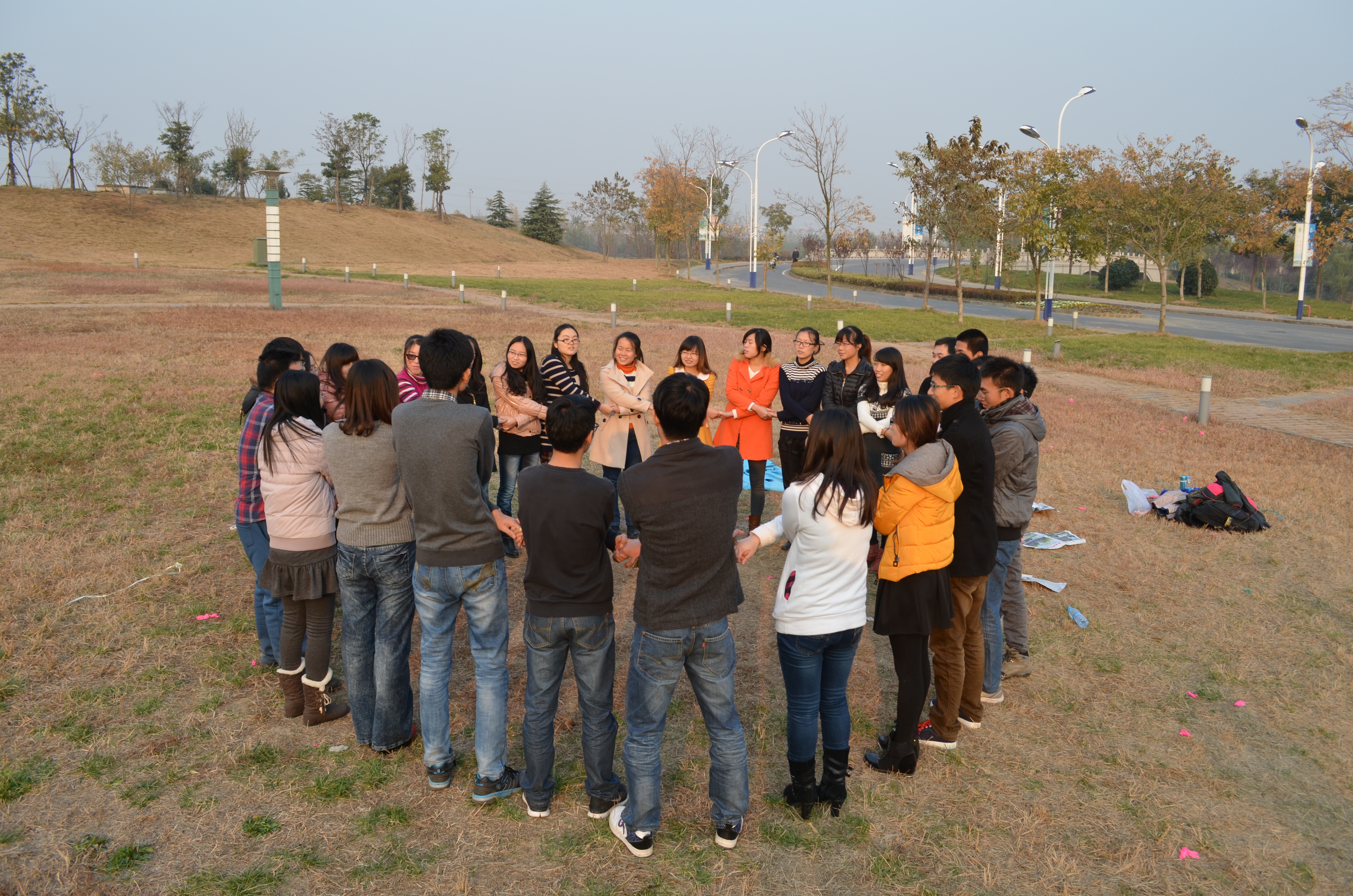 | 2013年12月1日星期日,由数学系团委、研究生会主办的“让梦领航”素质拓展活动在九龙湖“情人坡”举行,我系研究生一年级全体成员参加了此次活动。 本次活动主旨在通过,提高研究生的综合素质,加强团队的凝聚力,也为他们提供了一个相互交流和学习的机会,为今后梦想的顺利实现奠定坚实的基础。 素拓活动在下午15:00开始。首先,在学生干部的带领下,我系同学进行了一系列的安排。所有研究生分成四组,每组分别选出队长、队名、队歌、口号,之后,我们开始了正式的训练。 训练第一个项目是“背靠背起立”,每队先派出四名队员,背靠背坐在地上。 两人双臂相互交叉,合力使双方一同站起。共三次机会,每次起立限时一分钟。若一分钟内未起立,则失去此次机会。三次均未站起,则失败,被淘汰。若成功,则每队每次增加一人继续比赛。组织者在旁观看,选出人数最多且用时最少的一组为优胜。接下来,又进行了“心心相印”和“群龙取水”两个训练项目,通过这两个项目, 同学们深刻体会到,只要相信自己,乐观接受挑战,无论什么困难都能克服。 在几个分组竞技项目之后,我们的组织者别出心裁,又设计了几个集体项目。“解手链”项目培养团队合作为目的,同时也传到给每个成员这样的一个信息,看似简单的工作,还是要尽心完成,才能达到效果;而“摆字母”更将这个团队凝聚为一个整体。 本次活动提高了研究生的整体战斗力,培养了他们的组织交际能力和实践能力,提升了团队合作精神,增强了团队协作意识。作为“东大梦”系列活动之一,本次活动起到了很好的团队建设作用,为了进一步梦想的实现奠定了基础。 |