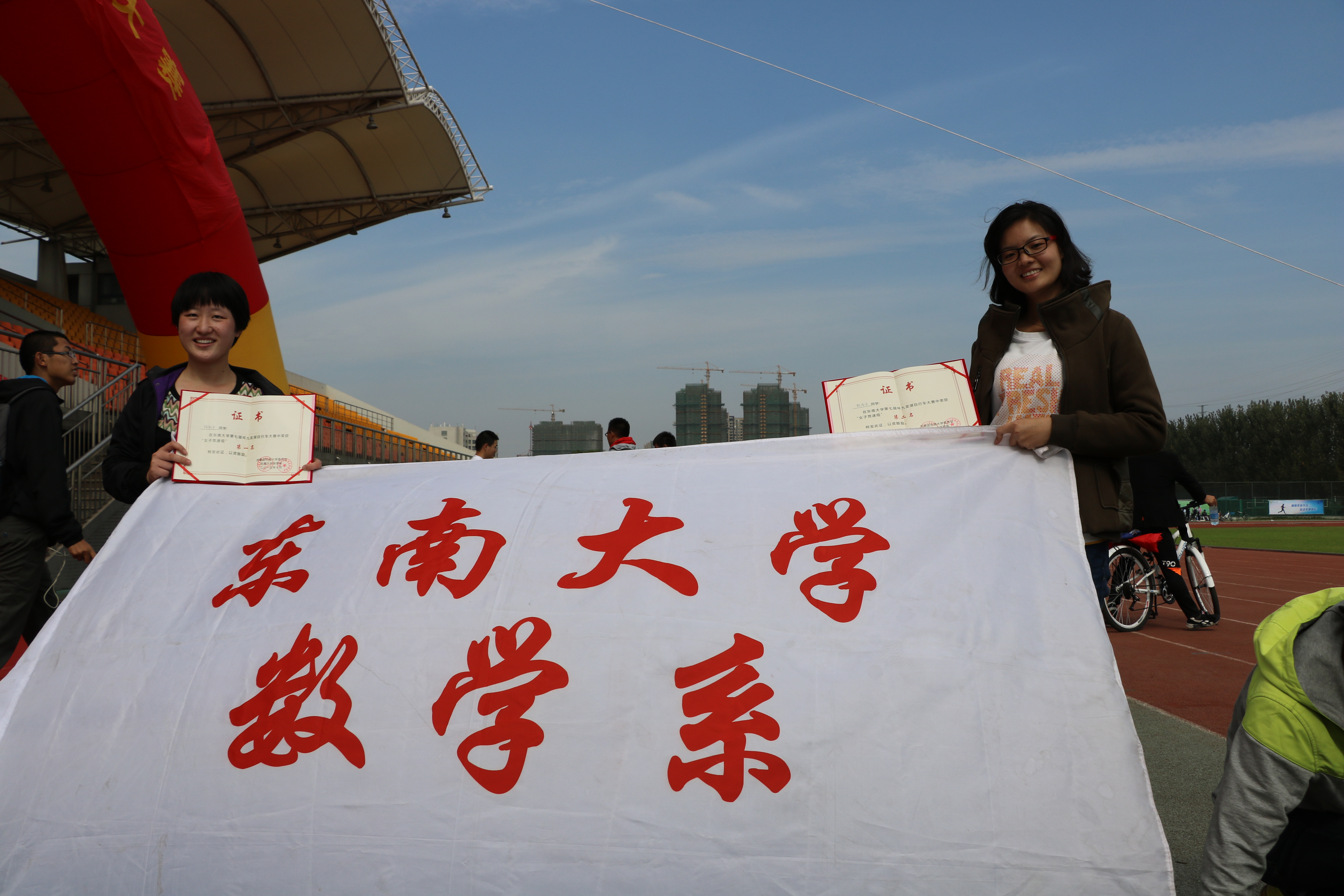九时,校队主力――我系雷诺同学率先出发,代表beat365在线官网参加与其他南京高校的友谊赛,并最终以8分29秒的优异成绩完成比赛,极大的鼓舞了7系队友。 与此同时,侯松昊、俞贵、杨冉等三位同学参加10米慢骑比赛,各有风采。侯松昊同学沉着冷静应对比赛,对赛道利用充分,走S型路线,每次即将压边线时,都会及时错开,最终平稳到达终点。俞贵同学则擅长慢行,多次快速回蹬脚踏板,来保持身体与脚的平衡,控制速度。杨冉同学则以稳专长,卡住时间与空间的落差点,每次要落下时,就会戛然而止,稳步前行。三位同学肌肉紧绷、神情严肃、双手紧捏把与闸,殊途同归,都以优异的成绩完成比赛!给予系快车队充足的信心,为最终获得奖杯做出贡献! 紧随其后进行的竞速赛是由李元庆老师,秦秋洪学长、兰睿东学长、林金广学长、赖南杏学姐、桂新平学姐等组成的7系骑行代表队。他们统一身着红蓝相间骑行衫,斗志昂扬的踏入赛场。终点线,秦秋洪学长如电光般飞跃过线,一路扬尘。兰睿东学长、林金广学长弓般骑行,紧随其后。李元庆老师宝刀未老,亦以优异的成绩完成比赛。也正因这团结且有经验的队伍,才有了沉甸甸的奖杯!值得一提的是,桂新平学姐、赖南杏学姐包揽了女子组第一、第二名! 12:30分左右,比赛正式落下帷幕!正如《易经》中所说:“二人同心,其力断金。”数学系参赛队员、拉拉队、后勤部众人齐心协力,力夺季军! |