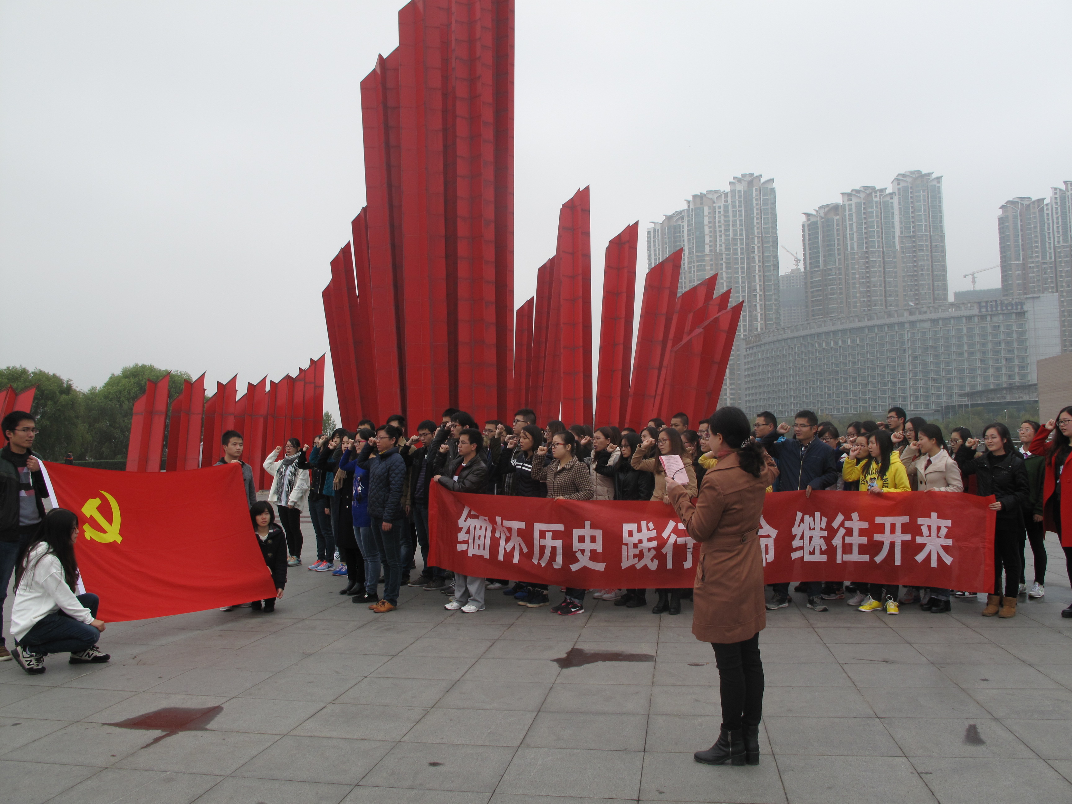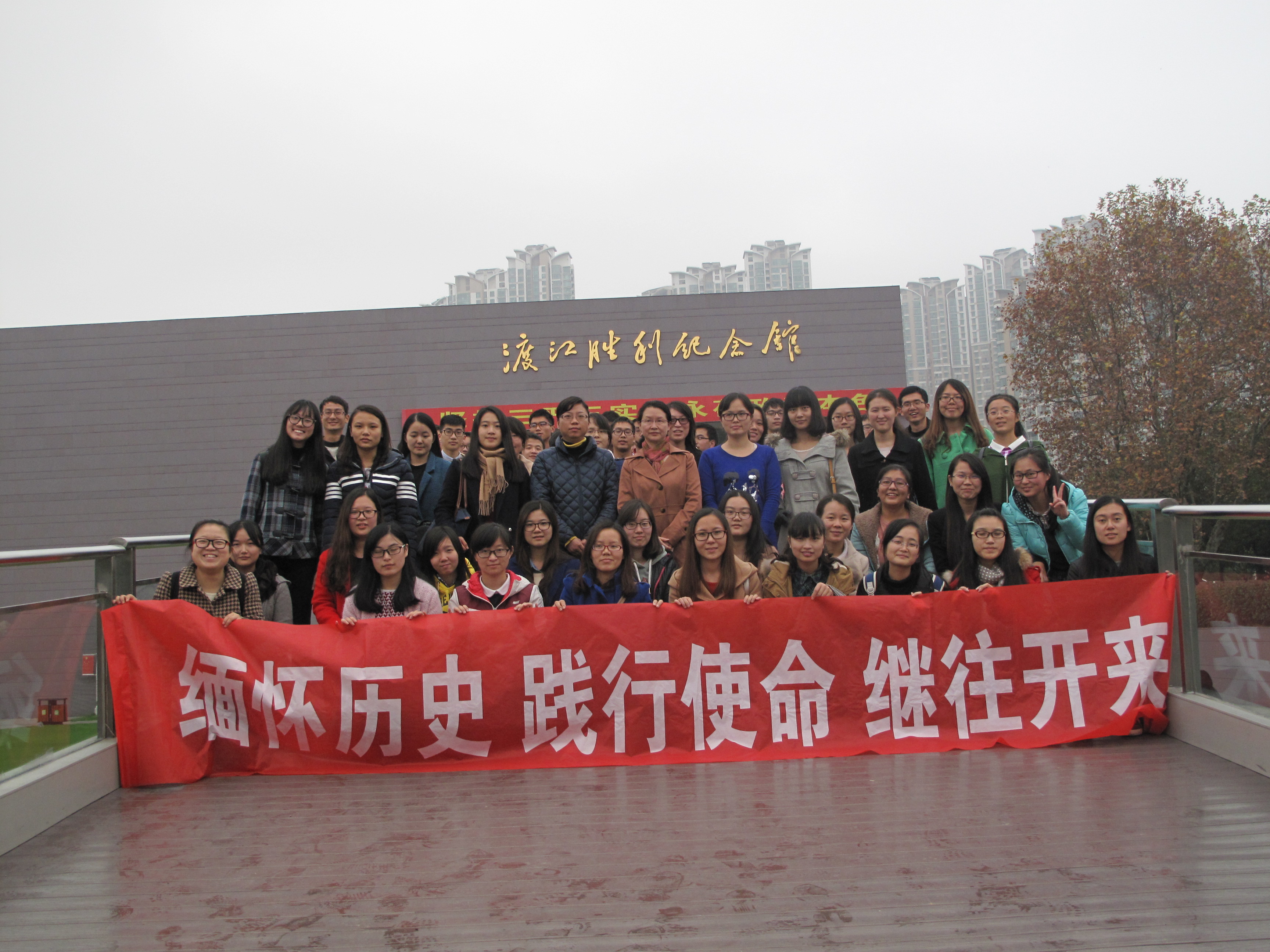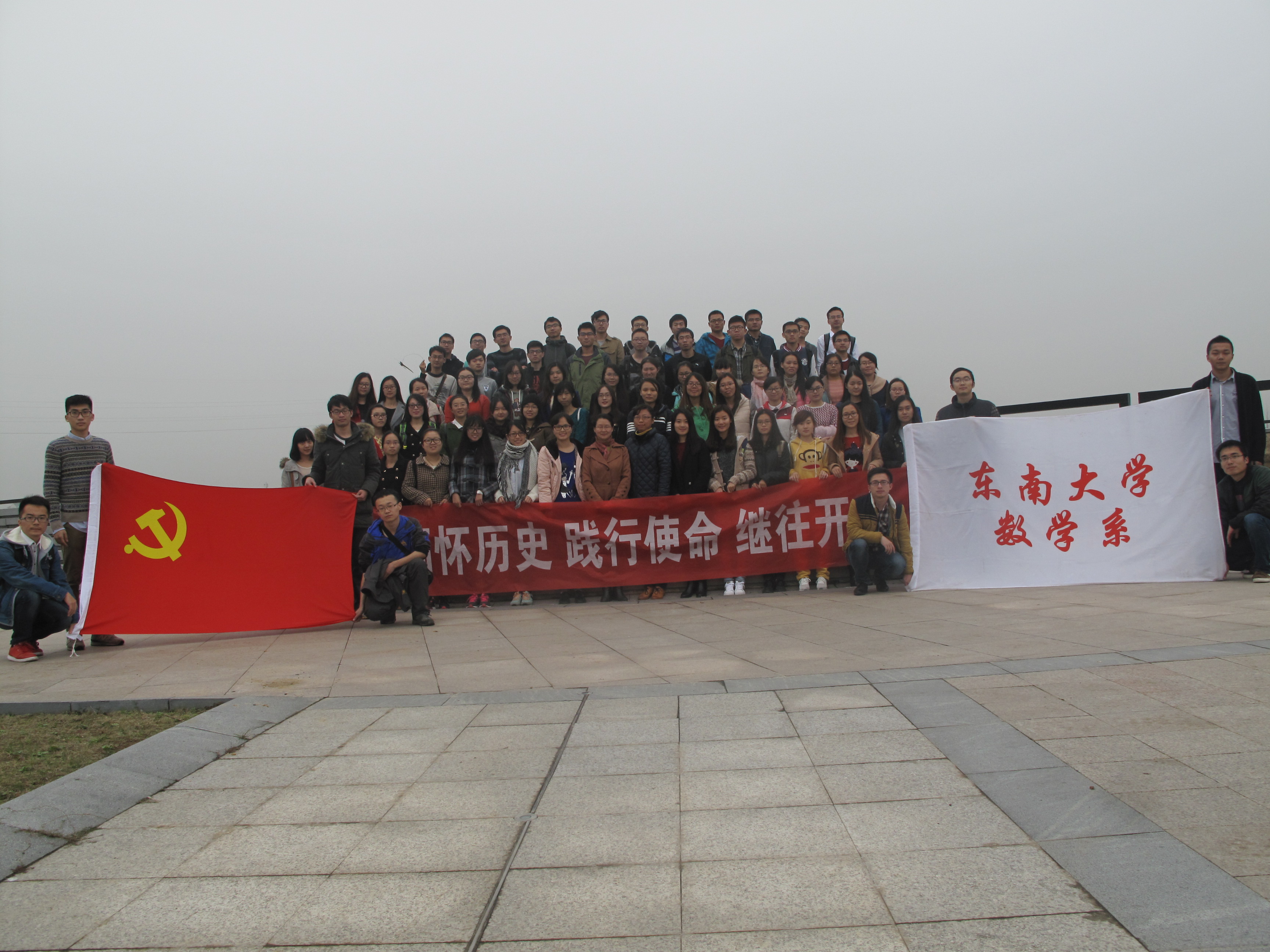 为了贯彻落实从严治党的要求,深入开展“三严三实”专题教育活动,为了加深学生党员对中国共产党历史的认识,进一步激发青年爱国热情,加强党组织凝聚力和学生党员历史使命感,2015年11月22日,数学系党委成功举办“缅怀历史 践行使命 继往开来”大型党日活动。数学系党委书记吴映红老师、副书记曹海燕老师参加本次活动并致辞,吴书记还带领全体学生党员重温入党誓词。 本次活动由数学系党委主办,2015级硕士生党支部承办。活动主要分为三个部分,“缅怀历史”―踏访红色印迹,“践行使命”―重温入党誓词,“继往开来”―开启寻宝之旅。其中,第一、第二两部分活动在南京渡江胜利纪念馆成功开展,第三部分活动在南京绿博园激烈展开。数学系本科生2个支部、硕士生3个支部和博士生1个支部将近80名党员一同参加党日活动。 11月22日下午1点,所有党员从学校乘车出发,抵达活动的第一站南京渡江胜利纪念馆。全体党员分成两组,先后参观了渡江胜利纪念馆。在讲解员细致的讲解下,大家感受了渡江战役中人民解放军冲破敌阵的宏伟场景,回忆起“钟山风雨起苍黄,百万雄师过大江”的壮丽场面,体会着革命先烈对革命事业必胜的壮志豪情。缅怀历史,鞭策自己不断进取。 在结束纪念馆的参观后,大家整队来到了纪念馆旁的“千帆竞渡”广场。数学系党委书记吴映红老师做了重要讲话,她指出:作为学生党员,要不忘历史,践行好自己的使命,做好本职工作,履行自己的职责,永远保持共产党的先进性。加强党性修养,坚定理想信念,提升道德境界,追求高尚情操。随后,吴书记带领大家一起重温了入党誓词。 在结束了前两部分的活动后,下午2:30左右,所有人乘车前往南京绿博园,展开了激烈的“继往开来之开启寻宝之旅”。活动以比赛形式展开,将所有党员以支部为单位分成了4个小组,用自己的智慧和团结的力量共同协作完成标志性建筑的定点找寻、合影以及面向于路人的问卷调查等任务。在激烈的角逐过后,本科生党支部勇夺一等奖,研二党支部获得二等奖,研三和博士生党支部以及研一党支部分获三等奖。数学系党委副书记曹海燕老师为活动作总结致辞,并和吴映红书记一起为获奖支部的代表颁发了证书和奖品。 活动在全体高声齐唱beat365在线官网校歌中结束,每个人的脸上都洋溢着灿烂而坚定的笑容。缅怀历史,践行使命,继往开来,愿每一名党员心中永存对党的誓言,愿在风雨中走过90多年历史的中国共产党更加兴旺、坚强、壮大、辉煌! |