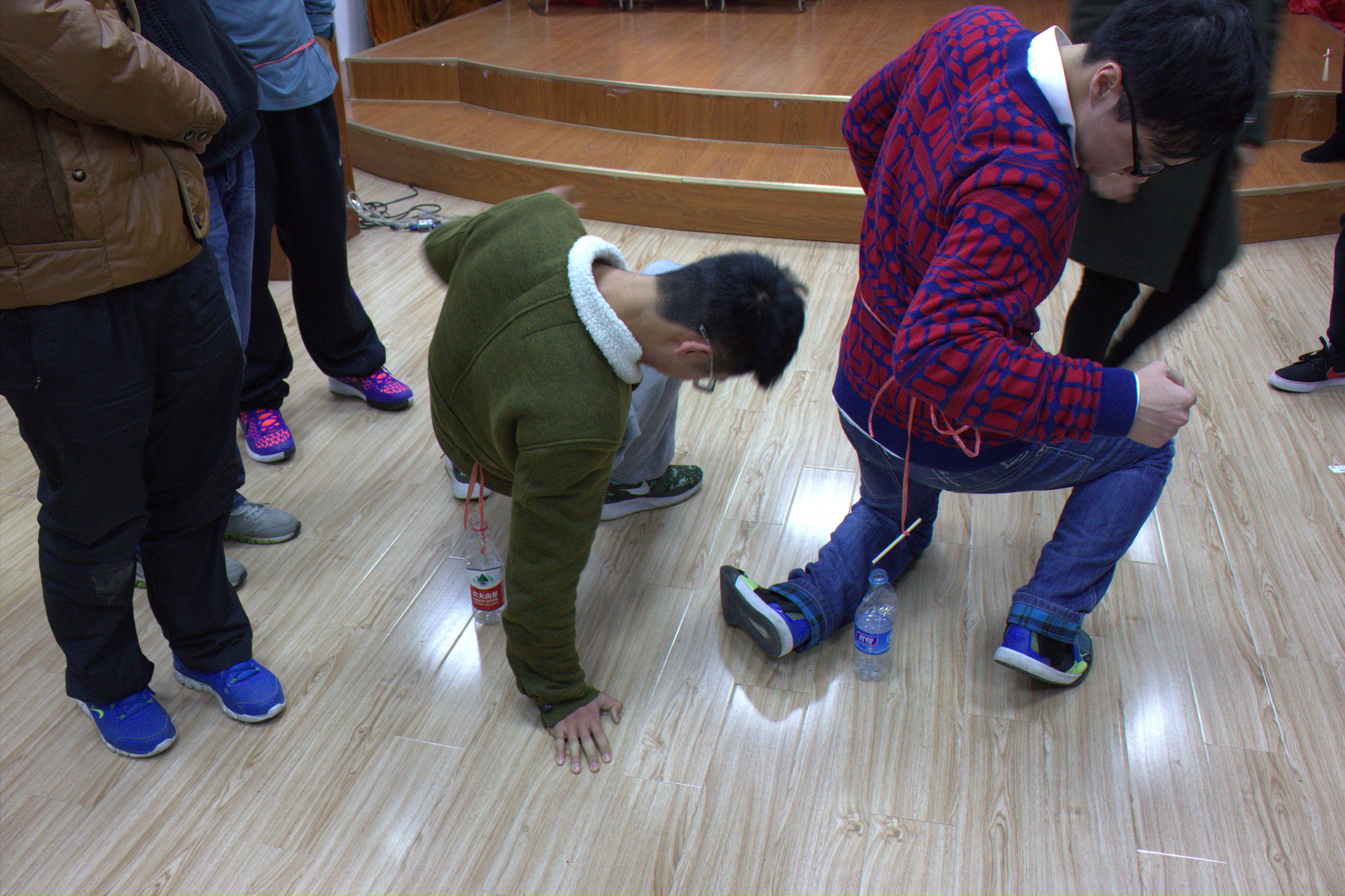 | 大家小心翼翼地呵护竹竿 |