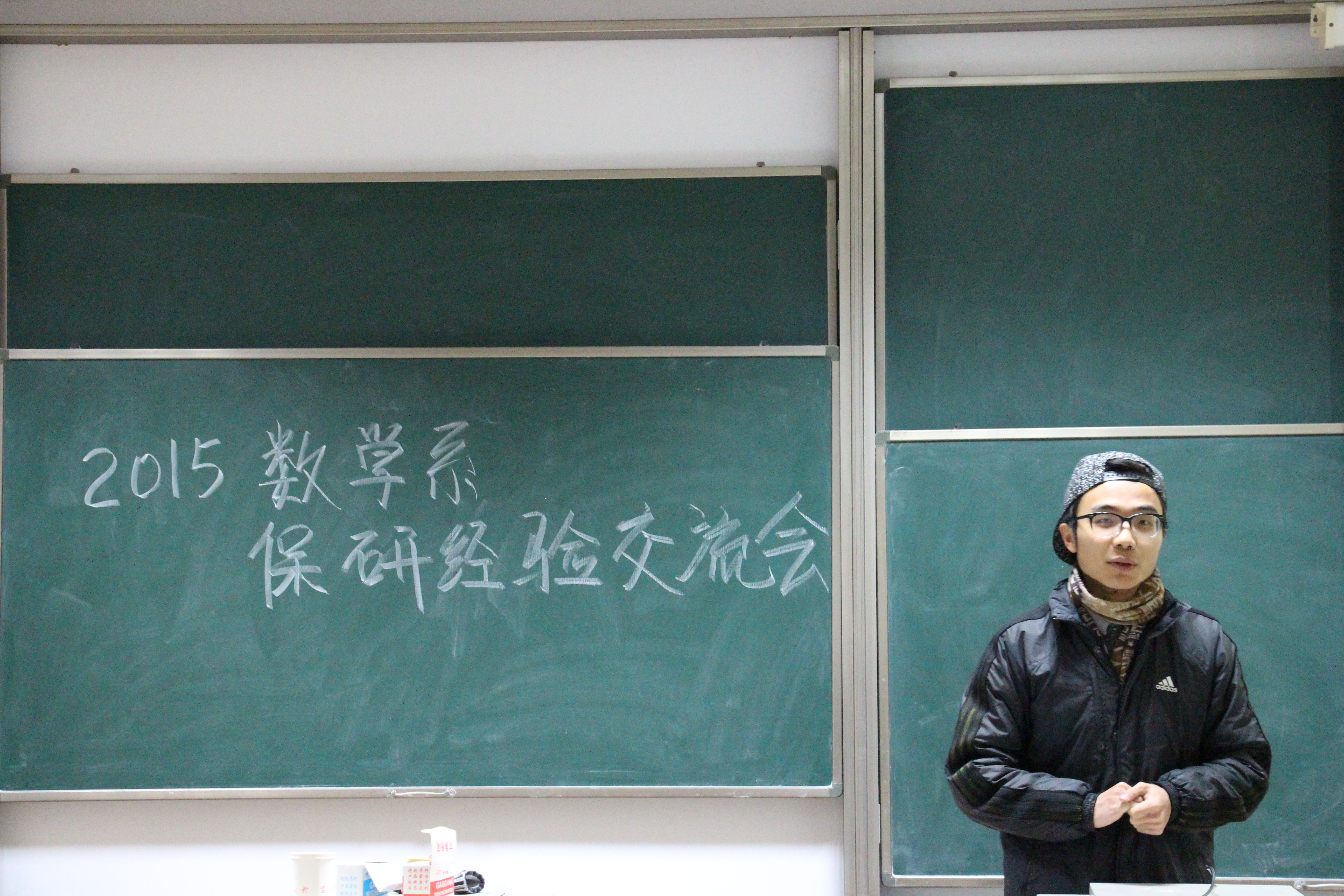 最先介绍的是免研至中科院数学与系统科学学院系统理论方向的潘冯超同学,他分享了免研考试的一些细节。刘国成同学免研到东大交院,他强调了明确目标的重要性,同时也分享了一些他所了解的项目。免研至东大数学复杂网络与复杂系统的刘洪�学长则幽默地讲解了一些面试的小技巧,首先是要保持微笑,第二点是别说不会,一步一步就完成一道你并“不会”的题。免研至北航信科的许卓颐同学以自身的例子说明了确定目标的重要性,另外强调一定要广投夏令营,包括那些特别好的学校也要投,万一中了呢?免研至东大经管的万佳�同学给大家讲了一个“学弱”的自我忏悔录,讲了免研考试的构造。同时她还给大家说明了去保研是因为意识到自身不足,希望继续学习提高自己,大家不要盲目跟风。免研至东大数学统计学的梁晓洁同学强调说想保外的一定要早关注各个高校的夏令营,如果绩点卡在保研边缘的,要有两手准备。她还给大家分享了一个保研论坛,想保校外的同学在拿到推免后要立即联系校外老师。免研至复旦大学数学与科学学院基础数学专业的金臻涛学长说明了以下三点的重要性:一是要掌握充分信息,关注保研论;二是要全面的学习和针对性的复习;三是要调整心态。免研至复旦大学数学与科学学院应用统计专业的温雅静同学给大家全面详细地分享了保研的流程、专硕和学硕的区别以及很多有用的资料。免研至东大经管学院产业经济学的王莹学姐分享了她在南开经管学院夏令营的经历,包括论文答辩时的一些需要注意的地方。免研至东大统计学的丁嘉沼学长提出了获取信息以及明确目标,他送给大家一句话“保研成功与否,结果理想与否,或许只是一个开始”。免研至东大数学复杂网络与复杂系统的田方正学长向我们推荐了南大的保研夏令营,谈到了保研考试需要准备的相应课程包括数分,高代,复变,实变等。免研至东大自动化专业的张向向学长则告诉我们提前联系导师的重要性,不然可能会错过许多机会。