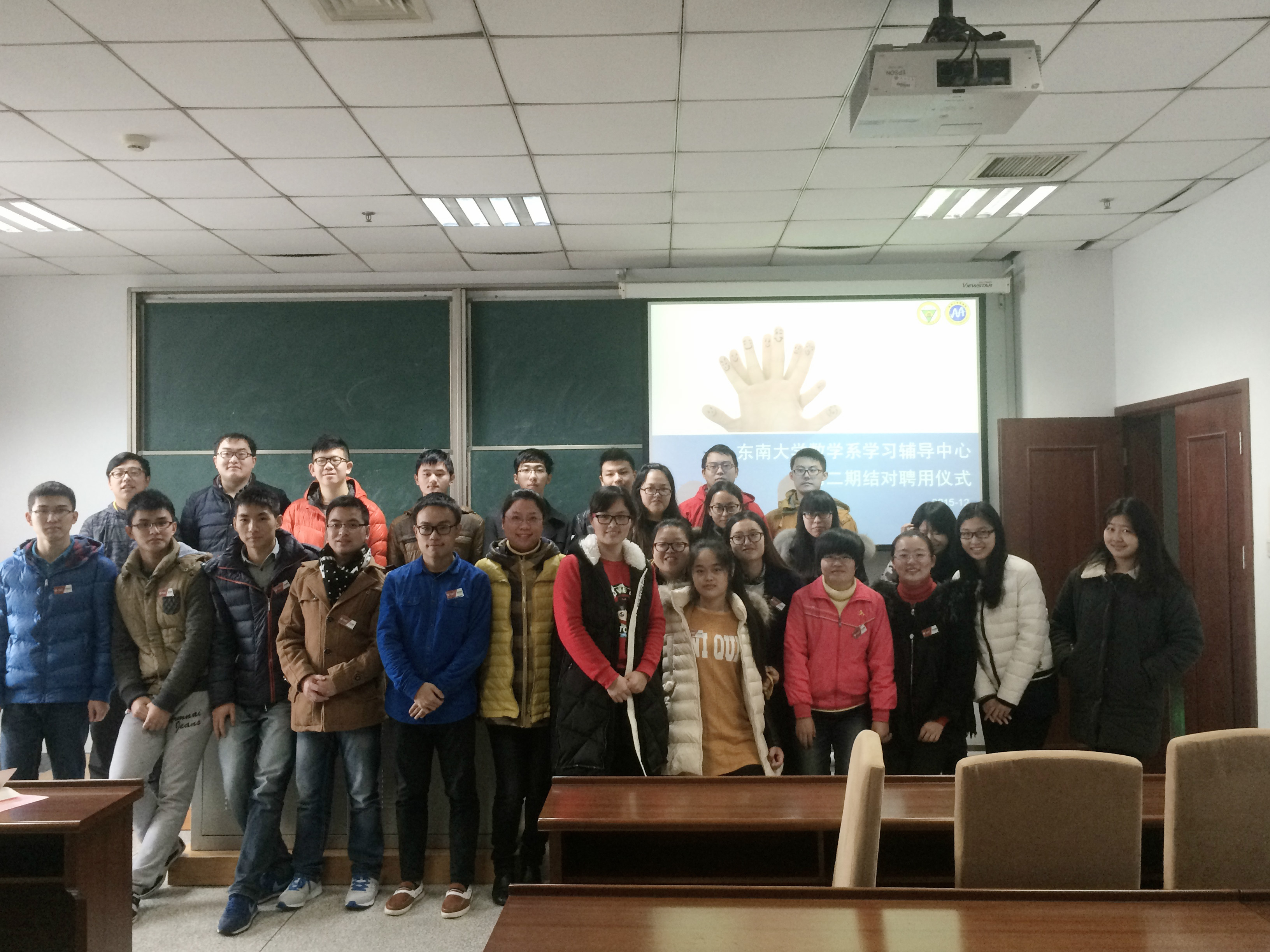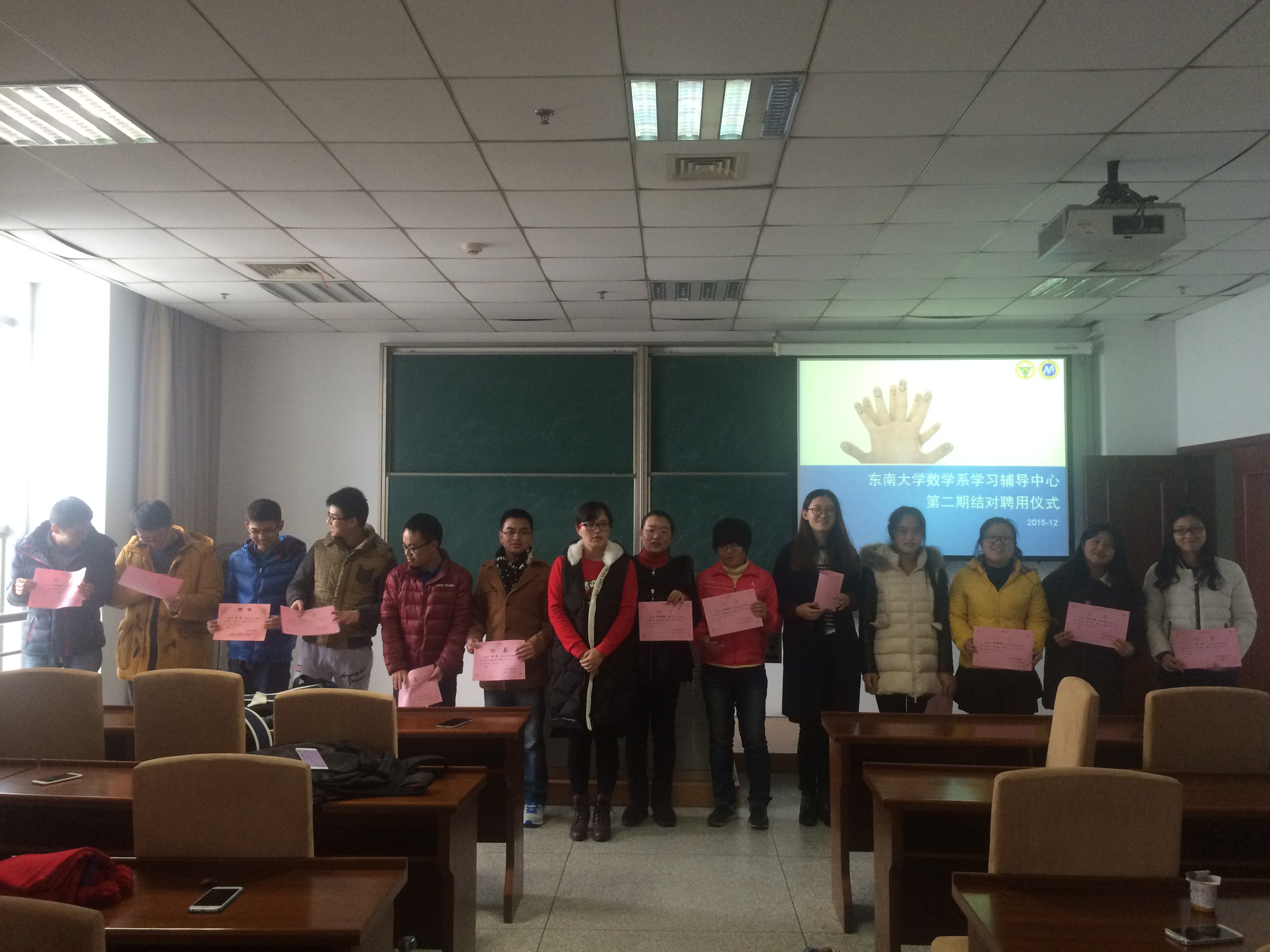 为了更好地促进我系2013级的学风建设,更好地架起学霸与学弱之间学习与情感的桥梁,数学系学习辅导中心第二期结对仪式于2015年12月24日圆满举行。数学系党委副书记曹海燕老师出席结对仪式,系团委书记、本科生第一党支部书记袁煜昶老师为13位辅导讲师颁发聘书和工作牌。 活动自今年12月正式启动,由数学系本科生第一党支部承办。期中考试以后,结合部分学生专业课成绩不是太理想的现状,正式启动了学习辅导中心第二期工程。在经过一段时间关于辅导讲师和学员的招募后,成功建立起“学优生―学困生”一助一的帮扶关系,打造“督学、助学、乐学”的帮扶平台,让每位同学都能学有所长,学有所用。 12月24日中午12时,数学系第一报告厅,学习辅导中心第二期结对仪式正式开始。会上,袁煜昶老师宣读了辅导讲师职责与学员职责,强调了辅导讲师对学员主要以陪同自习的形式开展辅导,通过自己身体力行的学习状态和方法促使学员探寻适合自己的学习方式,并确保在每次辅导过程中可以有耐心、有责任心地解答学员提出的各类相关课业问题。同时,袁老师也对大家提出了几点希望,辅导讲师应该对被帮扶同学的现状有深入的了解,对症指导;被帮扶的同学则应端正学习态度,直视自己的问题,勇于接受辅导讲师的帮助。 最后,袁煜昶老师为13名辅导讲师佩戴了工作牌,并颁发聘书。这是对辅导讲师工作职责的认可,更是一种激励,希望辅导讲师们能够担起这一职位所赋予的责任,用心、细心、耐心地完成这一任务。也希望通过我系学习辅导中心的共同努力,可以实现讲师与学员的共同进步与共同成长。(袁煜昶) |