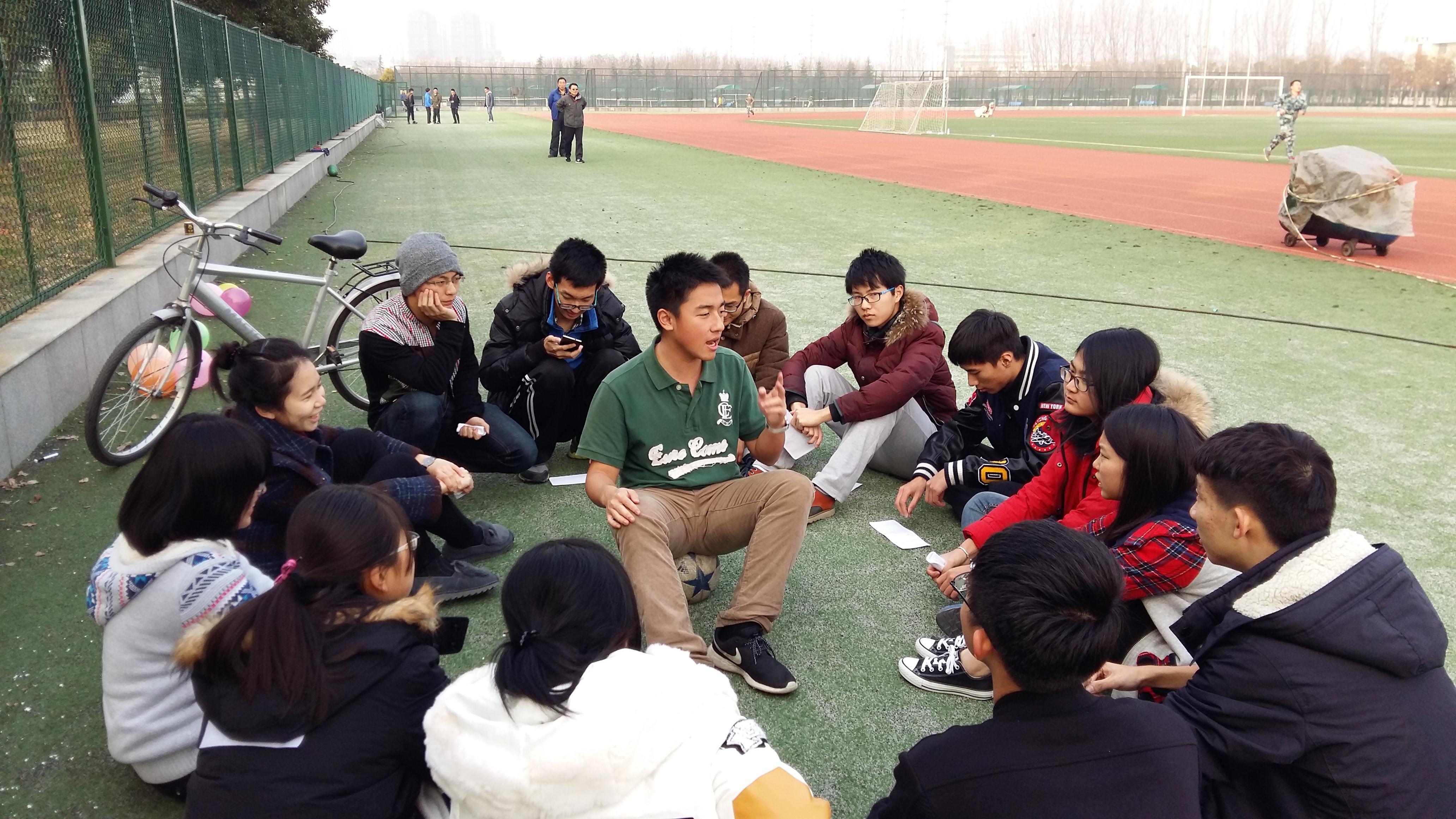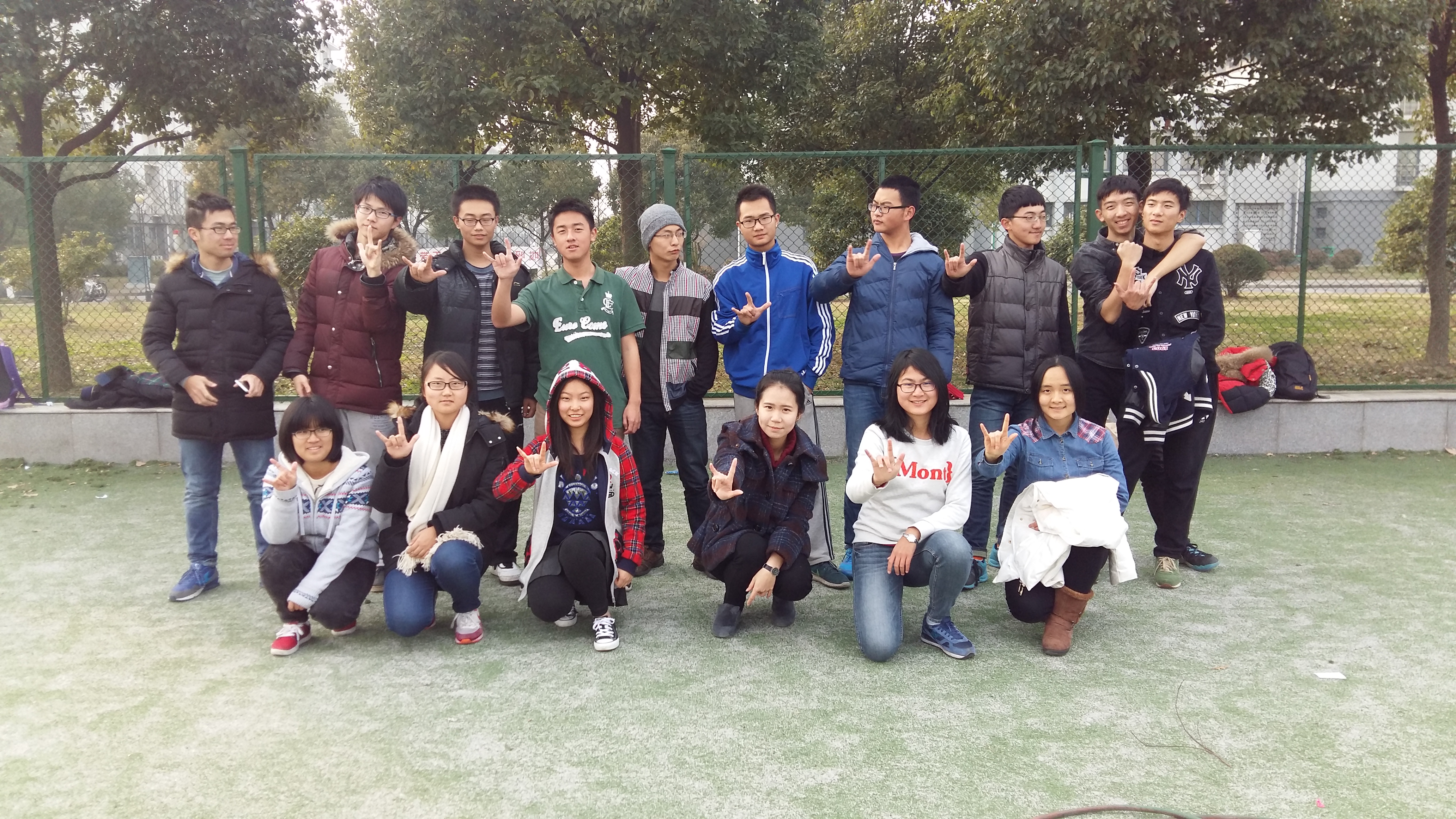 为号召支部成员走出宿舍,运动健身,070151团支部结合“三走”的主题,于2015年12月30日下午开展了趣味运动会,支部成员积极参加,班指导和数学系其他团支部成员也被我们的活动吸引。 趣味运动会主要由踩气球,你做我猜和撕名牌三个活动组成。班委成员提早到达梅园体育场做前期准备,大家一边吹气球一边玩起了花样足球,用足球踢中气球者胜。听到这个新奇的想法,大家纷纷活跃起来,轮流守门,不亦乐乎。恰逢体育课的同学们在练习太极拳,成员们更是迫不及待加入其中,认真诠释着自己对以柔克刚的理解,争论着每一个动作和细节。 2:15分,支部成员集合完毕,我们的运动正式开始。撕名牌活动中,成员们自行组队,两支队伍蓄势待发。发令声下,队员们如猛虎扑向敌军,各出奇招,志在必得。男生勇猛,直接上阵对垒,明中决斗;女生机敏,耐心伺机而动,暗中巧取胜利。为了小组的胜利,大家激烈地讨论对策,互相帮扶,携手共战。为了保护自己的名牌,身轻如燕的伙伴们时而躺倒在地时而背靠栏杆,酣畅淋漓。 我们的活动吸引了许多同学的目光,体育场上的同学们纷纷赶来观战,陌生的身影,绽放同样的笑声。一些其他支部成员,也加入了我们运动者的行列。我们的队伍渐渐壮大,运动的激情也随之蔓延开去。 汗水流过,成员们脸上流露出畅快的笑容。意犹未尽,我们又参加了狼人等有趣的小游戏。原本不熟悉的两人笑闹着,原本互相叫不出名字的几个渐熟了对方的性格,原本没说过几句话的路人竟在一旁深切而认真地聊着,脸上满是关切,信任,是放松的戒备,是爬满心怀的情谊。 虽然由于成员们的兴趣原因,我们的活动做出了一些临时的调整,但我们的民主理念还是取得了支部成员的信任和支持。在调整之中,我们看到的是成员们活跃新颖的思维,是不拘一格的想法,也让我们重新认识了举办活动的意义和原则,能够达到传播运动精神的效果,何必刻板行事墨守成规,引导大家的思绪喷发,收到的不仅是大家的热情,更是新的闪光点,是属于我们团支部的独特光彩,而这些也是我们在今后的工作中需要充分挖掘,倍加珍惜的。 冬日寒冷,我们迸发运动的激情,走出宿舍,我们重拾健康的生活态度。让快意运动的精神传遍我们的支部,传给东大人。 虽然活动简单,但每一次聚集都增添的我们友情的厚度,升温着070151支部这个大家庭的温暖,让我们紧紧凝聚,紧紧相依,一起走过美好的大学四年。正如合影中我们的手势,我们心怀对集体的热爱,携手走向更好的2016。 |