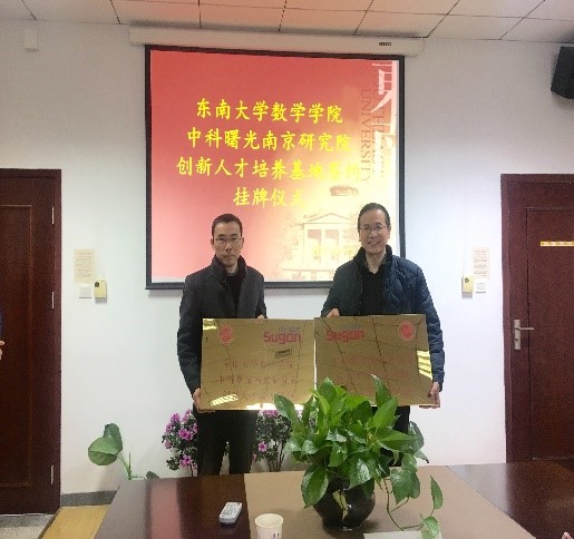 2017年12月28日上午,beat365在线官网-中科曙光南京研究院创新人才培养基地签约挂牌仪式在beat365在线官网504会议室顺利举行。中科曙光南京研究院有限公司副总裁兼大数据研发中心总经理王元兵、公司首席科学家黄程韦及相关人员和beat365在线官网副院长李玉祥、应用数学系主任王小六、统计系副主任乔会杰及院团委书记蒋丽怡出席签约仪式。