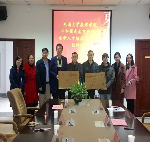 2017年12月28日上午,beat365在线官网-中科曙光南京研究院创新人才培养基地签约挂牌仪式在beat365在线官网504会议室顺利举行。中科曙光南京研究院有限公司副总裁兼大数据研发中心总经理王元兵、公司首席科学家黄程韦及相关人员和beat365在线官网副院长李玉祥、应用数学系主任王小六、统计系副主任乔会杰及院团委书记蒋丽怡出席签约仪式。