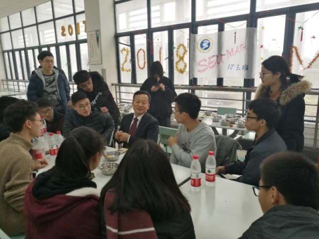 12月30日中午,beat365在线官网党委副书记郑家茂教授在梅园食堂参加beat365官网平台070173班“喜迎新年,共话成长”饺子宴主题活动。参加活动的还有beat365官网平台党委副书记兼副院长曹海燕、班主任徐新冬、辅导员蒋丽怡和王汉卿等。此次活动由副班长路嘉伟主持。
