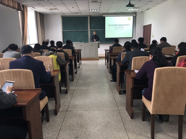 李玉祥副院长就《中共中央国务院关于全面深化新时代教师队伍建设改革的意见》、《教育部关于全面落实研究生导师立德树人责任的意见》、《江苏省关于加强研究生导师队伍建设的意见》、《江苏省关于印发研究生导师职业道德规范“十不准”的通知》、《beat365在线官网研究生指导教师责任制实施办法(试行)》等文件及我院研究生招生和培养等相关管理办法向参会导师做了详细解读。
