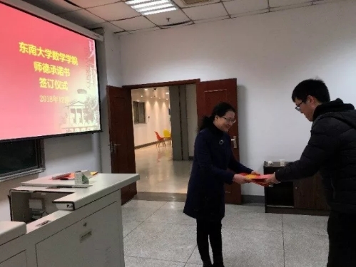 首先beat365官网平台曹进德院长带领新进教师进行《人民教师誓词》宣誓并寄语青年教师。接着党委书记吴映红与新进教师签订“教师师德承诺书”,切实加强师德师风建设。