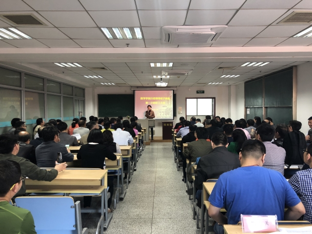 会议首先由学院党委书记吴映红同志主持。吴书记介绍了换届工作组的成员,对他们的到来表示欢迎,并表示学院将按照校党委的要求,积极配合换届工作组认真做好行政班子换届工作。接着,换届组组长任利剑副书记发表讲话,向全院教职工详细介绍了院行政领导班子成员任职的基本条件,强调了本次行政换届的重要意义,并详细说明了本次换届工作的有关纪律要求和注意事项。任利剑副书记指出,坚强有力的领导班子是学院事业发展的基础保障,希望学院领导班子坚持“四个意识”、坚定“四个自信”、做到“两个维护”,切实提高政治意识,站在推动学院和学校双一流建设的高度上认真落实学校有关要求,重视行政换届工作,同时希望老师本着对党的教育事业负责、对学院未来的发展负责的态度,全力支持配合换届工作,推动学院本次换届工作顺利完成。