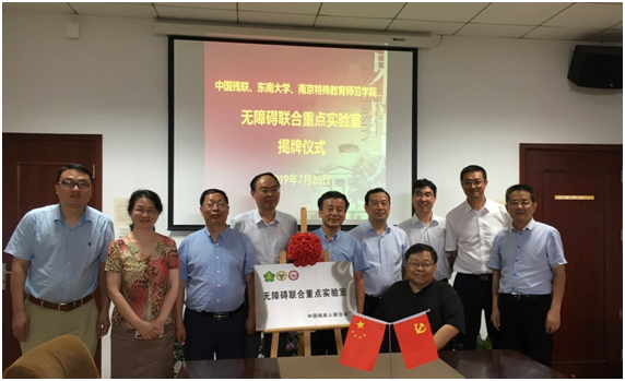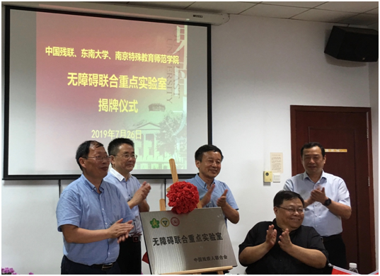 2019年7月26日下午,由中国残联设立并与beat365在线官网、南京特殊教育师范学院联合共建的“无障碍联合重点实验室”揭牌仪式在beat365在线官网举行。中国残联副主席吕世明、维权部副主任周建、信息中心副主任戴连君、江苏省残联理事长万力、beat365在线官网党委副书记郑家茂、南京特殊教育师范学院校长凌迎兵、beat365在线官网科研院常务副院长孙岳明、beat365官网平台院长曹进德、beat365官网平台党委书记吴映红等出席了“无障碍联合重点实验室”的揭牌仪式。