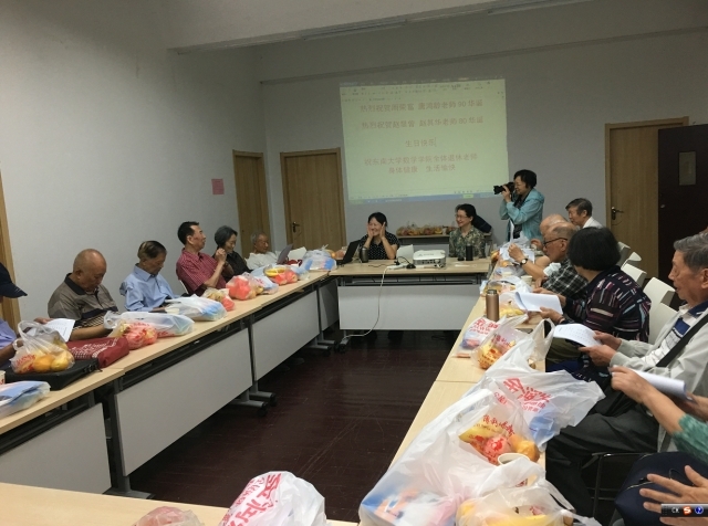 四位老寿星也分别发言,对大家的祝福表示感谢,周荣富老师还献唱了一首英文歌。大家共同祝愿老寿星福如东海,寿比南山,健康幸福,快乐长寿!学院为寿星准备了寿桃,退协也为寿星和到会的老同志准备了一份小礼物,最后大家合影留恋。会议在热烈的气氛中圆满结束。