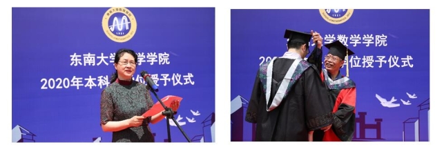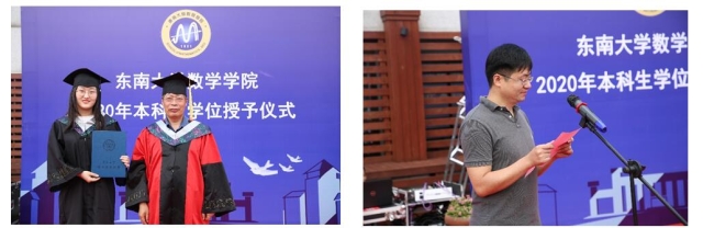 首先,beat365官网平台党委书记吴映红老师为全体毕业生送上了真挚的祝福和美好的期许,同时她也对同学们提出了三点希望:一是希望同学们抱定远大志向,牢记使命担当;二是希望同学们始终崇尚科学,坚持追求真理;三是希望同学们不忘初心,不负韶华,以奋斗的青春成就生命的灿烂;吴书记的讲话情深意切表达了对16级本科生的祝福和嘱托,为简朴而庄重的学士学位授予仪式正式拉开了帷幕。紧接着,beat365官网平台副院长王小六老师依次宣读了获得学士学位的同学名单,由beat365官网平台院长曹进德教授为每一位同学颁发毕业证书,并为毕业生同学们拨正流苏,象征着同学们学有所成,顺利毕业;最后学位授予仪式在全场老师同学合唱beat365在线官网校歌的热烈氛围中圆满结束,会后全体老师同学们合影留念。
