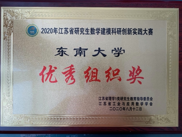 2020 年8月12日上午,江苏省研究生数学建模科研创新实践大赛颁奖大会在南通大学举行。该赛事是由江苏省教育厅专项资助的“江苏省研究生创新实践活动” 主题赛事之一,由江苏省理学 1 类研究生教育指导委员会主办,面向江苏省研究生培养单位的在读研究生,旨在激发省内广大研究生利用数学科学方法探究、解决工程 技术和社会经济发展中的实际问题,培养研究生创新意识和创造能力, 培养研究生团队协作意识,提升研究生创新实践能力,进一步促进学科的交叉融合和研究生培养质量的提高。2020 年江苏省研究生数学建模科研创新实践大赛在中国研究生数学建模竞赛专家委员会指导下,由南通大学承办,江苏省工业与应用数学学会协办,大赛组委会办公室设在南通大学理学院。