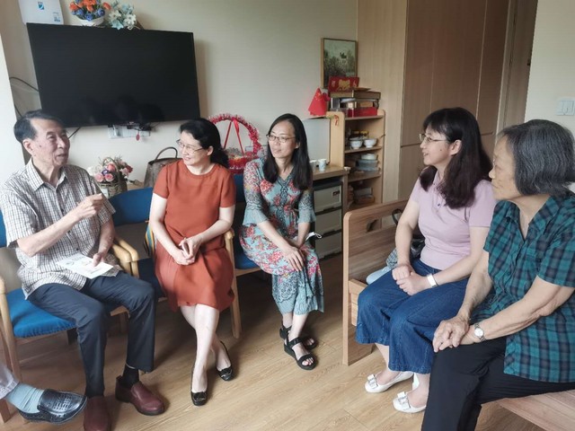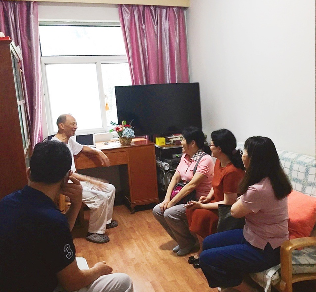 交谈之中,老教师们仍十分关切beat365官网平台发展状况,谈及将自己的一生奉献给了最热爱的教育事业,已入耄耋之年的老人眼神中仍焕发着昔日讲台上的奕奕神采,周荣富教授还特地为我们现场演唱了一首《The more we get together》,为beat365官网平台在任老师们送上节日祝福。