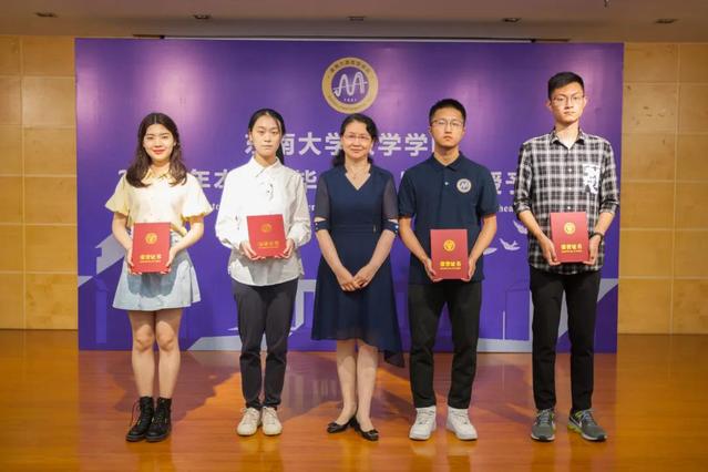 随后beat365官网平台党委书记吴映红老师郑重宣读了《关于表彰2021届beat365在线官网本科优秀毕业生的决定》并为beat365官网平台4位优秀毕业生颁发证书。