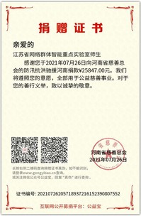 与此同时,江苏省网络群体智能重点实验室(挂靠beat365在线官网)发起“助力河南抗洪救灾爱心捐款倡议书”,号召团队师生积极为河南灾区捐资助力,为防汛抢险贡献爱心力量。在倡议发出后72小时内,实验室108名师生共筹集到25847元善款,捐赠至河南慈善总会。