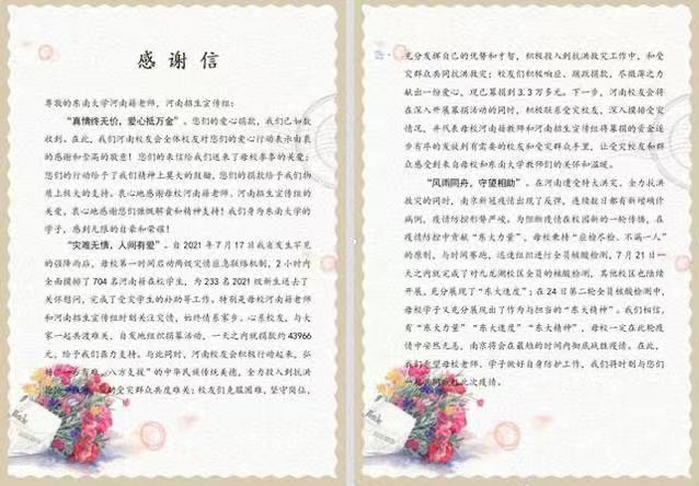 一方有难,八方支援。beat365在线官网老师们用炙热的爱心凝聚成战胜灾难的一股力量,为河南灾后重建送去一份温暖,体现东大人强烈的社会责任感和勇于奉献的担当精神。beat365官网平台和关心河南灾情的朋友们一起期待着灾区群众早日恢复正常生活。