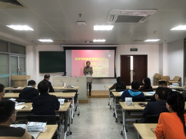 曹进德院长首先对此次学校教育思想大讨论的背景及主要目的和任务要求进行了介绍。曹进德院长指出,近年来,党和国家多次强调数学等基础学科的重要性,数学等基础学科的人才培养事关国家发展,民族未来,党和国家对基础学科的发展与人才培养提出更高、更迫切的新要求。曹进德院长强调学院要借助这次教育思想大讨论,找准适应与引领未来的一流数学领军人才的特质以及应具备的“人格、素质、能力和知识结构”,五育并举体系化构建一流数学领军人才培养机制,培育国家战略需要的数学领军人才。最后,曹进德院长要求全体教职工高度重视、扎实推进本次教育思想大讨论,通过这次大讨论,回归立德树人的初心。