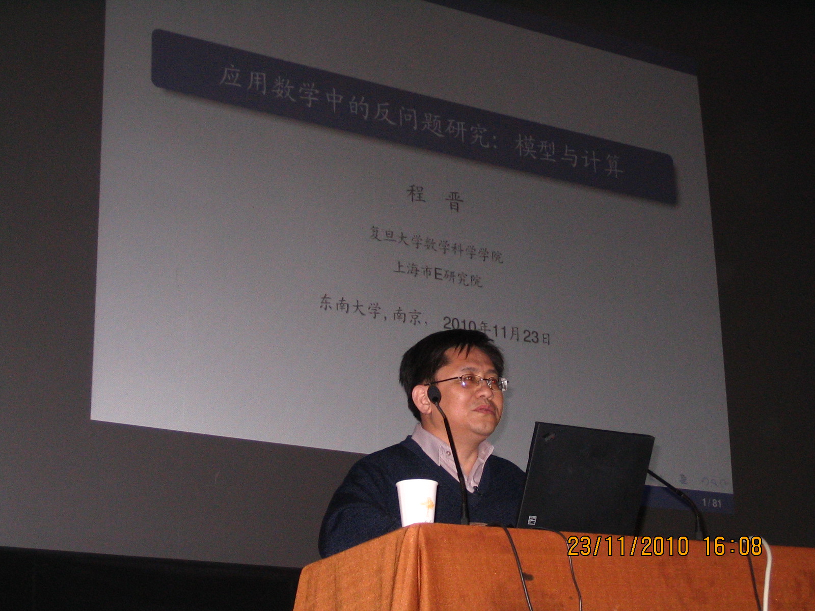 11月23日下午,复旦大学数学科学学院程晋教授应邀来我校作了题为“应用数学中的反问题研究:建模与计算”的学术报告。 程晋教授长期从事数学物理反问题和工业数学的研究,在国际学术界具有重要的影响。现任Inverse Problems等国际杂志的编委, 同时兼任法国Metz大学、日本东京大学、京都大学客座教授,英国物理学会会士。是国际反问题学会执行理事,中国工业应用与数学学会常务理事兼副秘书长,中国计算数学学会常务理事,中国科学院科学与工程计算国家重点实验室学术委员会委员。 程晋教授结合自己的研究经历和成果,深入浅出地介绍了反问题的数学方法和理论在工业数学中的应用, 并以具体以工业炼钢过程中的炉壁损伤检测问题为例,介绍了数学方法在实际问题中的应用。此次报告受到了研究生的热烈欢迎, 来自我校不同学科专业的近700名研究生聆听了此次报告。 此次报告是学校研究生院和我系联合组织的研究生学科进展数学讲座之一。该系列讲座的目的是通过高水平的学术讲座, 开阔学生的学术视野,提高我校不同专业、不同方向的研究生的数学素养。 |