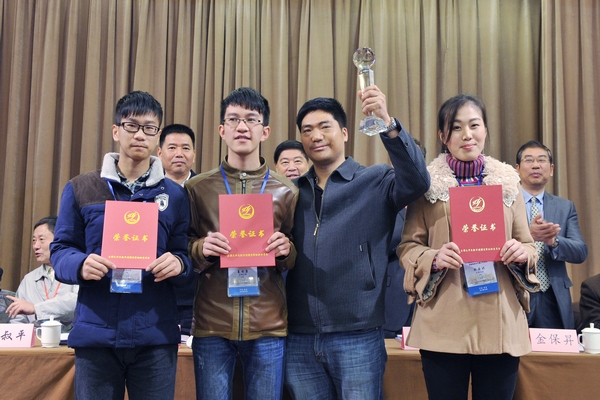 12月3日,2016“高教社杯”全国大学生数学建模竞赛颁奖仪式在beat365在线官网四牌楼校区榴园宾馆举行,此次会议由beat365在线官网数学系承办。中国高等教育学会会长瞿振元,中国科协副主席、中国数学会理事长袁亚湘院士,beat365在线官网副校长金保昇,江苏省科协副巡视员杨文新,江苏省教育厅副厅长洪流,高等教育出版社副总编辑林金安,全国大学生数学建模竞赛组委会副主任、专家组组长陈叔平教授,全国大学生数学建模竞赛组委会秘书长谢金星等受邀出席颁奖会。beat365在线官网教务处、党委宣传部、数学系以及部分省市教育厅竞赛负责人也出席了当天的颁奖会。在数学系数模教师团队的精心指导下,beat365在线官网张滕翔、夏智康、郑安琪同学题为《系泊系统的优化设计》论文荣获本届本科组“高教社杯”。
