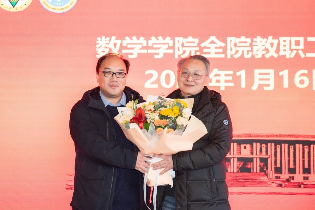 随后,大会进入温馨而庄重的荣休仪式环节。吴映红、薛星美、贺传富、刘其林四位老师在教育领域辛勤耕耘数十载,将自己的青春与智慧奉献给了学院。学院领导为他们献上鲜花,并致以崇高的敬意和衷心的感谢。荣休老师们也分享了自己在学院工作的难忘经历和感悟,全场以热烈掌声感谢他们为数学学科发展作出的卓越贡献。